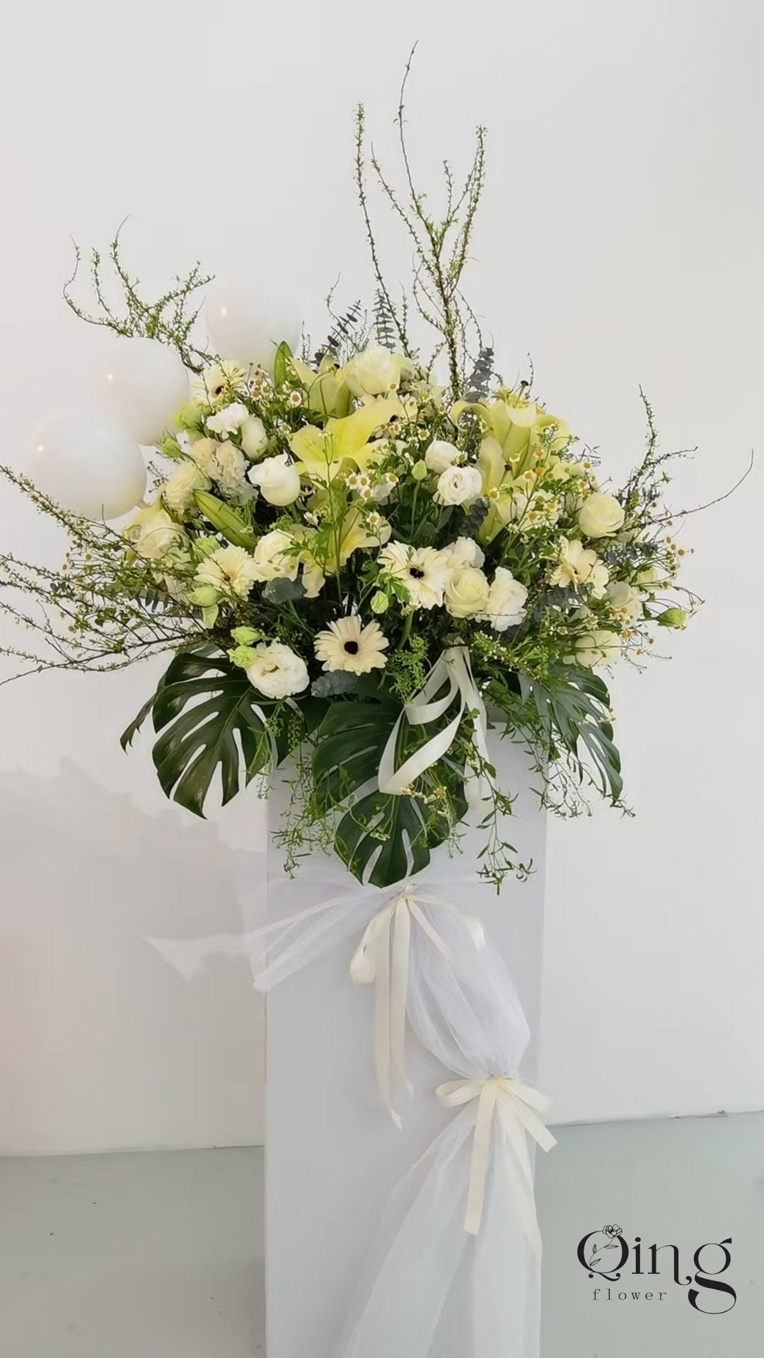 A heart full of dreams and devotion. This exquisite bouquet features a heart-shaped design of blue and white roses, symbolizing purity, sincerity, and everlasting love. Wrapped in soft white layers with pearl accents, it radiates elegance and romance. Perfect for proposals, anniversaries, or simply to say “you are my one and only.”• Main Flowers: White Roses• Shape: Heart-shaped romantic design• Style: Elegant, dreamy, and timeless• Suitable For: Proposal, Anniversary, Valentine’s Day, Romantic SurprisesAll fresh flowers and foliage are seasonal and may be substituted with similar varieties of equal or greater value. Each arrangement is uniquely handcrafted and may vary slightly from the display photo.