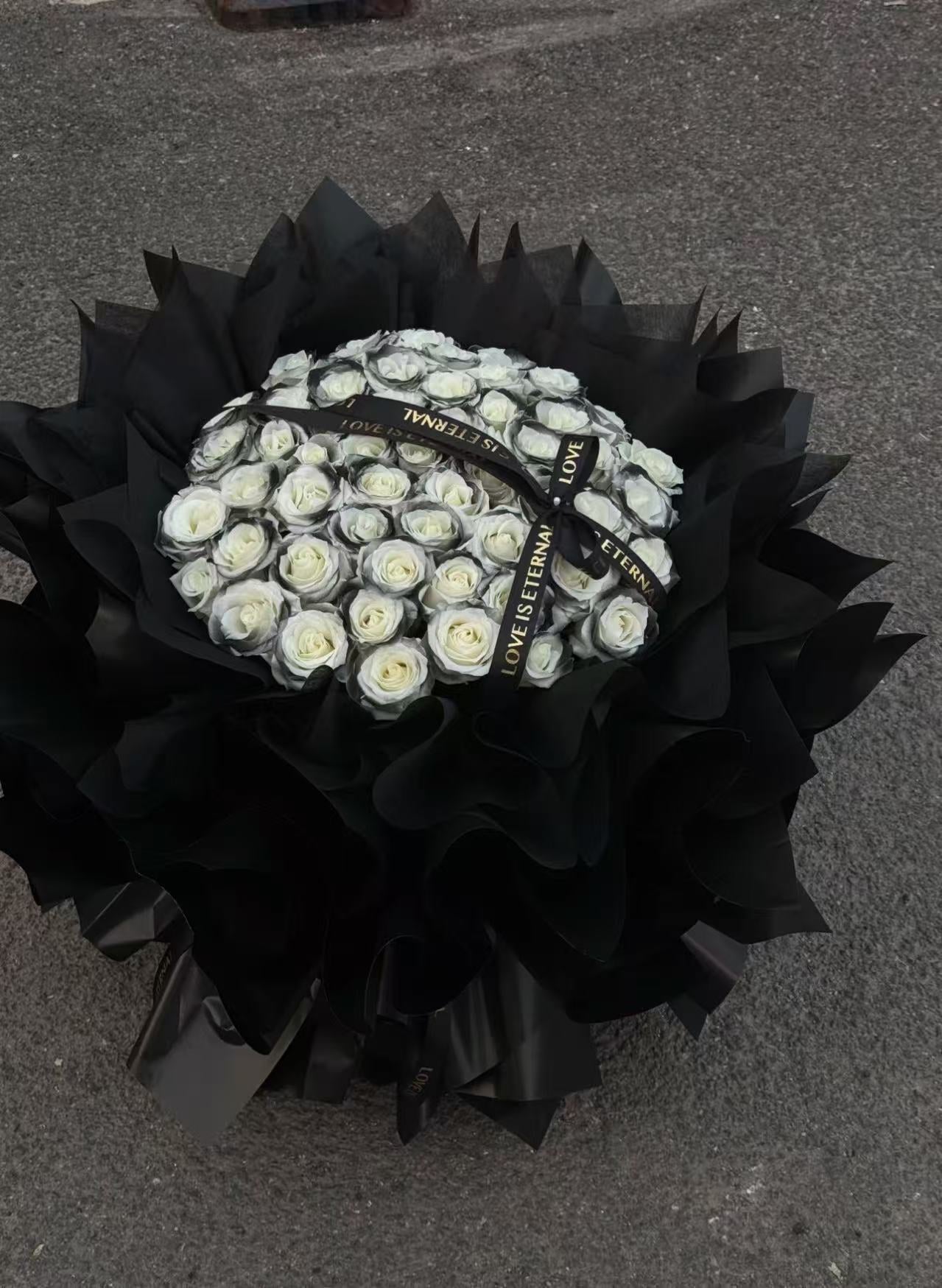 A heart full of dreams and devotion. This exquisite bouquet features a heart-shaped design of blue and white roses, symbolizing purity, sincerity, and everlasting love. Wrapped in soft white layers with pearl accents, it radiates elegance and romance. Perfect for proposals, anniversaries, or simply to say “you are my one and only.”• Main Flowers: White Roses• Shape: Heart-shaped romantic design• Style: Elegant, dreamy, and timeless• Suitable For: Proposal, Anniversary, Valentine’s Day, Romantic SurprisesAll fresh flowers and foliage are seasonal and may be substituted with similar varieties of equal or greater value. Each arrangement is uniquely handcrafted and may vary slightly from the display photo.