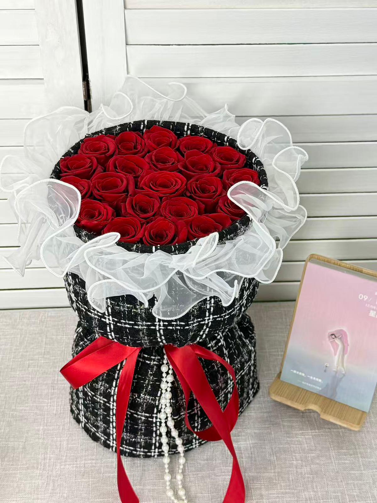 A heart full of dreams and devotion. This exquisite bouquet features a heart-shaped design of blue and white roses, symbolizing purity, sincerity, and everlasting love. Wrapped in soft white layers with pearl accents, it radiates elegance and romance. Perfect for proposals, anniversaries, or simply to say “you are my one and only.”• Main Flowers: White Roses• Shape: Heart-shaped romantic design• Style: Elegant, dreamy, and timeless• Suitable For: Proposal, Anniversary, Valentine’s Day, Romantic SurprisesAll fresh flowers and foliage are seasonal and may be substituted with similar varieties of equal or greater value. Each arrangement is uniquely handcrafted and may vary slightly from the display photo.