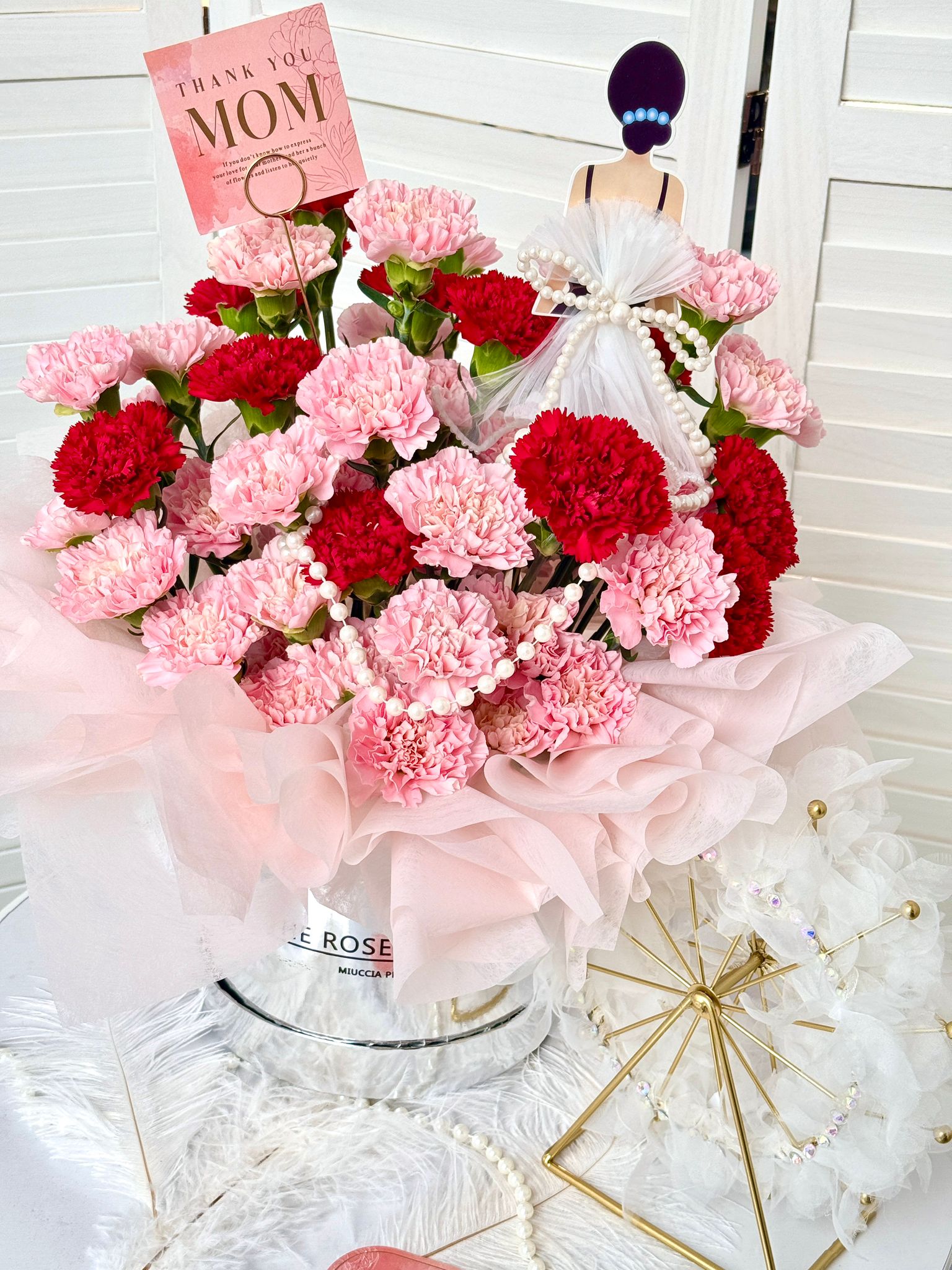 A heart full of dreams and devotion. This exquisite bouquet features a heart-shaped design of blue and white roses, symbolizing purity, sincerity, and everlasting love. Wrapped in soft white layers with pearl accents, it radiates elegance and romance. Perfect for proposals, anniversaries, or simply to say “you are my one and only.”• Main Flowers: White Roses• Shape: Heart-shaped romantic design• Style: Elegant, dreamy, and timeless• Suitable For: Proposal, Anniversary, Valentine’s Day, Romantic SurprisesAll fresh flowers and foliage are seasonal and may be substituted with similar varieties of equal or greater value. Each arrangement is uniquely handcrafted and may vary slightly from the display photo.