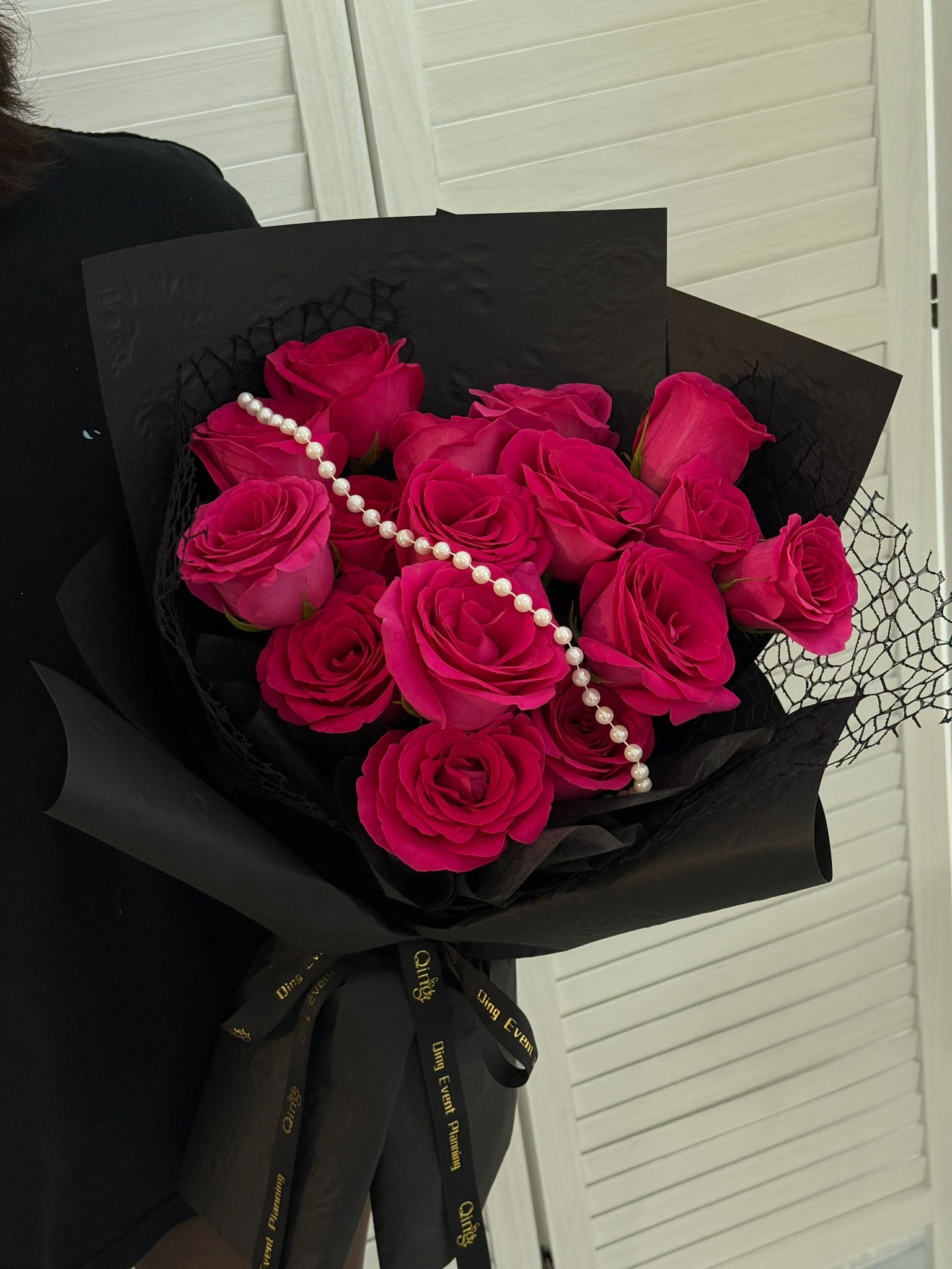 A heart full of dreams and devotion. This exquisite bouquet features a heart-shaped design of blue and white roses, symbolizing purity, sincerity, and everlasting love. Wrapped in soft white layers with pearl accents, it radiates elegance and romance. Perfect for proposals, anniversaries, or simply to say “you are my one and only.”• Main Flowers: White Roses• Shape: Heart-shaped romantic design• Style: Elegant, dreamy, and timeless• Suitable For: Proposal, Anniversary, Valentine’s Day, Romantic SurprisesAll fresh flowers and foliage are seasonal and may be substituted with similar varieties of equal or greater value. Each arrangement is uniquely handcrafted and may vary slightly from the display photo.