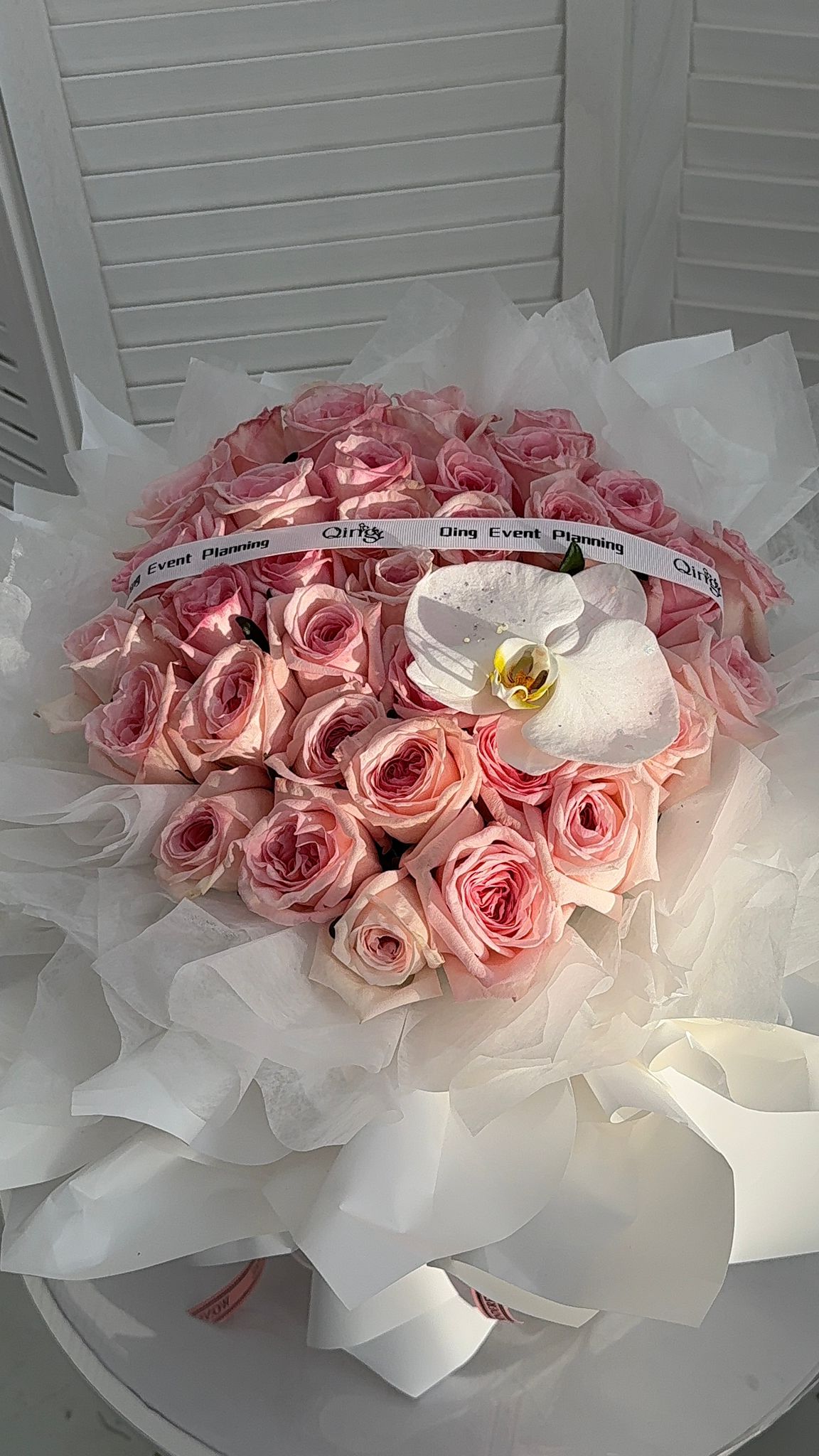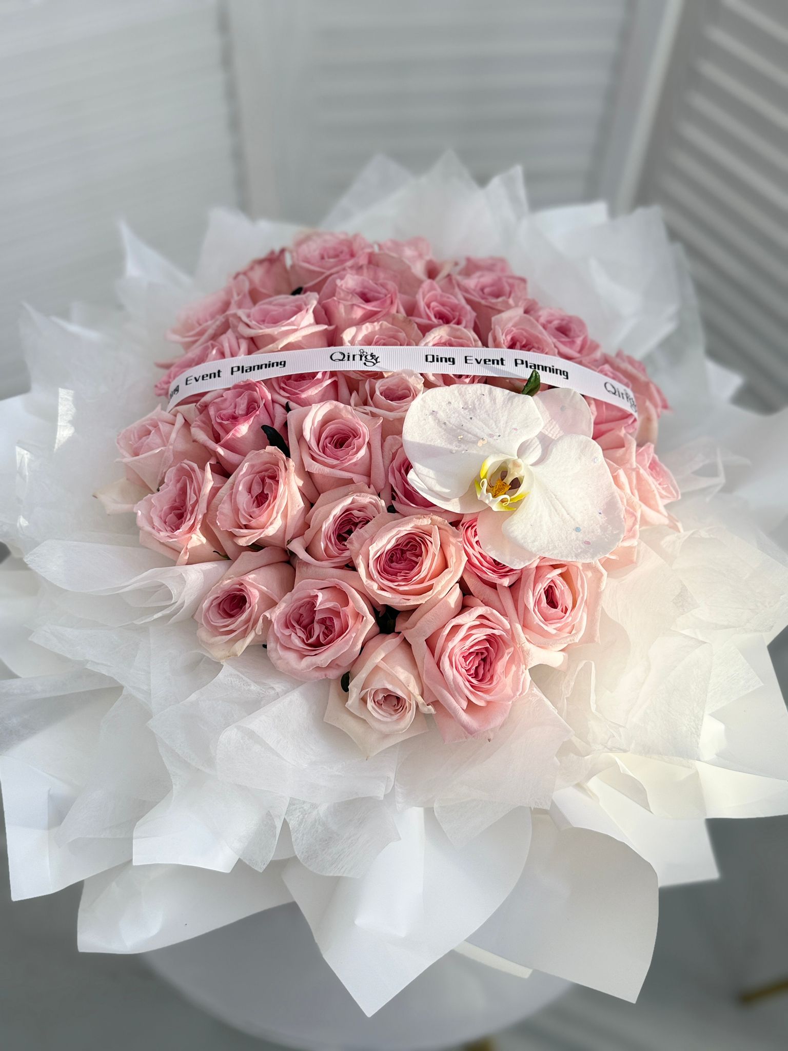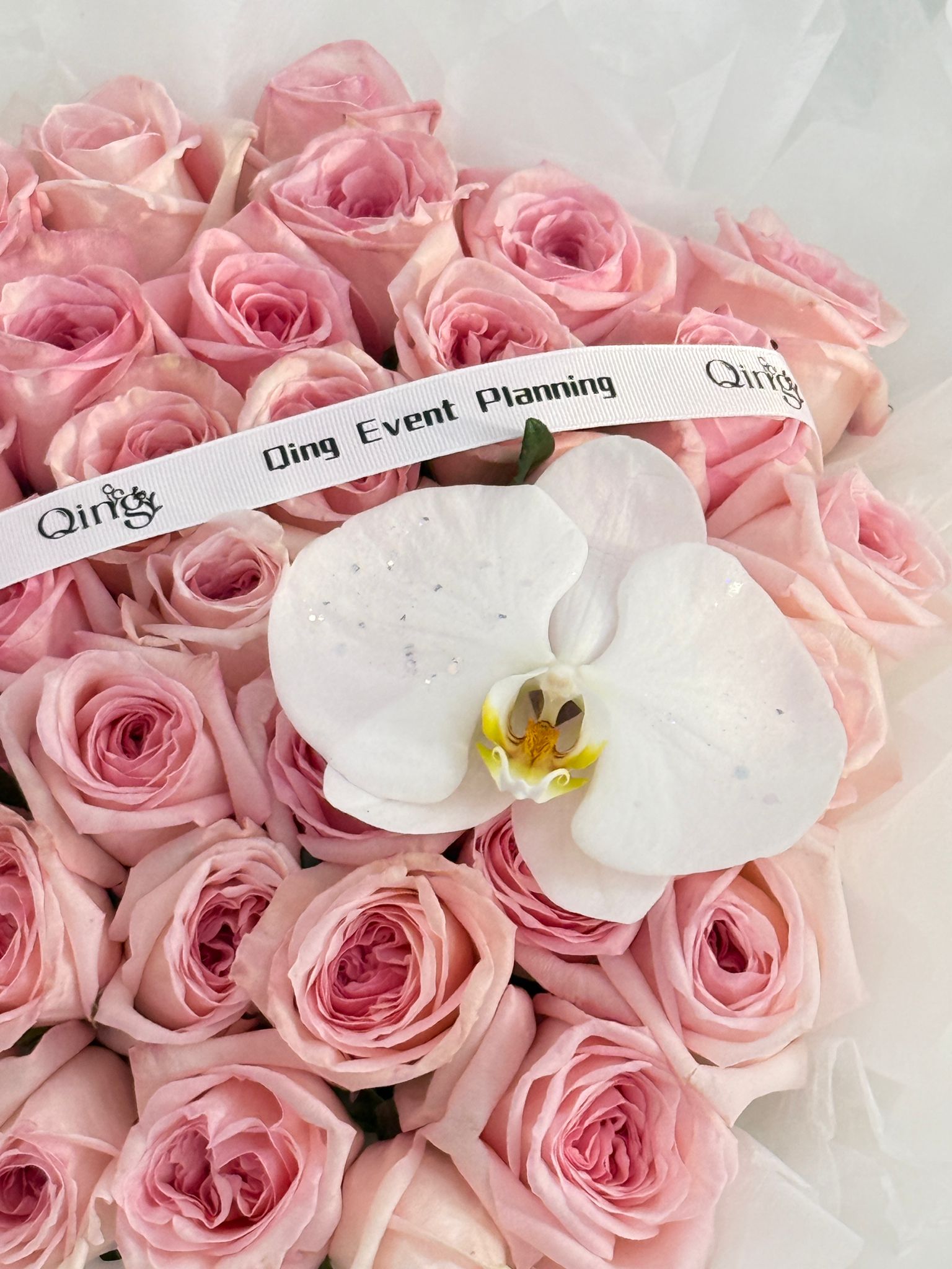 A heart full of dreams and devotion. This exquisite bouquet features a heart-shaped design of blue and white roses, symbolizing purity, sincerity, and everlasting love. Wrapped in soft white layers with pearl accents, it radiates elegance and romance. Perfect for proposals, anniversaries, or simply to say “you are my one and only.”• Main Flowers: White Roses• Shape: Heart-shaped romantic design• Style: Elegant, dreamy, and timeless• Suitable For: Proposal, Anniversary, Valentine’s Day, Romantic SurprisesAll fresh flowers and foliage are seasonal and may be substituted with similar varieties of equal or greater value. Each arrangement is uniquely handcrafted and may vary slightly from the display photo.