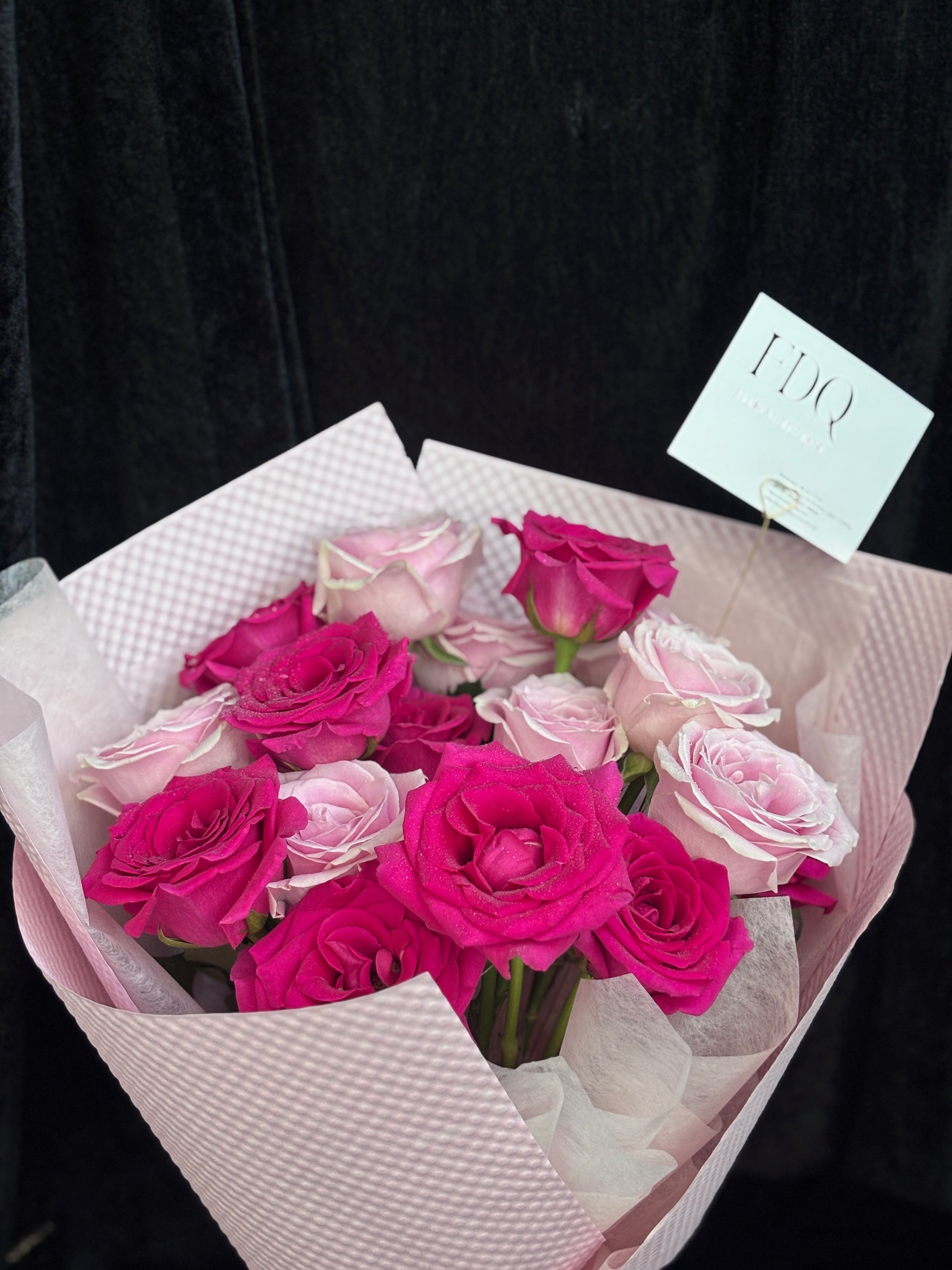 A heart full of dreams and devotion. This exquisite bouquet features a heart-shaped design of blue and white roses, symbolizing purity, sincerity, and everlasting love. Wrapped in soft white layers with pearl accents, it radiates elegance and romance. Perfect for proposals, anniversaries, or simply to say “you are my one and only.”• Main Flowers: White Roses• Shape: Heart-shaped romantic design• Style: Elegant, dreamy, and timeless• Suitable For: Proposal, Anniversary, Valentine’s Day, Romantic SurprisesAll fresh flowers and foliage are seasonal and may be substituted with similar varieties of equal or greater value. Each arrangement is uniquely handcrafted and may vary slightly from the display photo.
