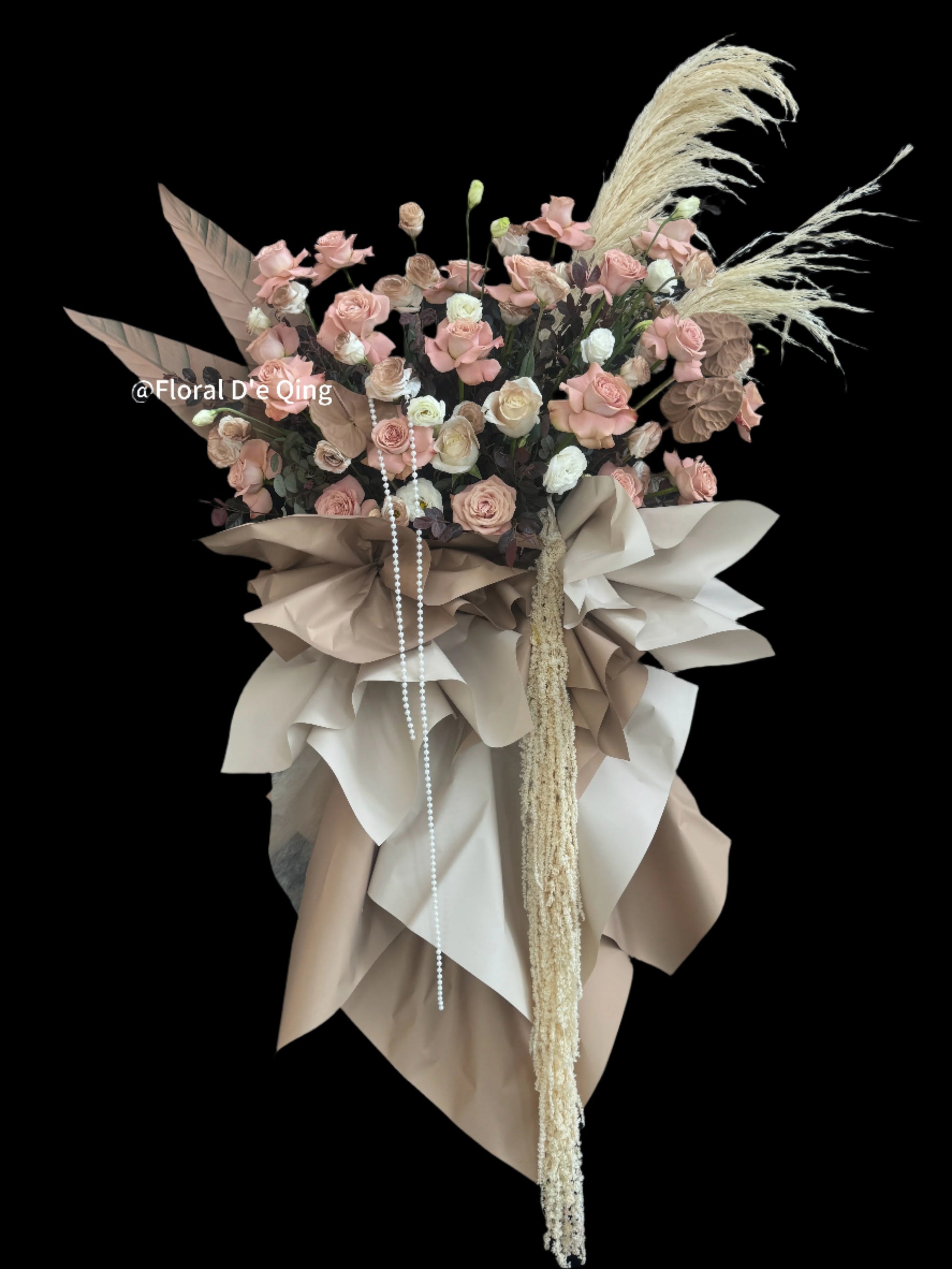 A heart full of dreams and devotion. This exquisite bouquet features a heart-shaped design of blue and white roses, symbolizing purity, sincerity, and everlasting love. Wrapped in soft white layers with pearl accents, it radiates elegance and romance. Perfect for proposals, anniversaries, or simply to say “you are my one and only.”• Main Flowers: White Roses• Shape: Heart-shaped romantic design• Style: Elegant, dreamy, and timeless• Suitable For: Proposal, Anniversary, Valentine’s Day, Romantic SurprisesAll fresh flowers and foliage are seasonal and may be substituted with similar varieties of equal or greater value. Each arrangement is uniquely handcrafted and may vary slightly from the display photo.