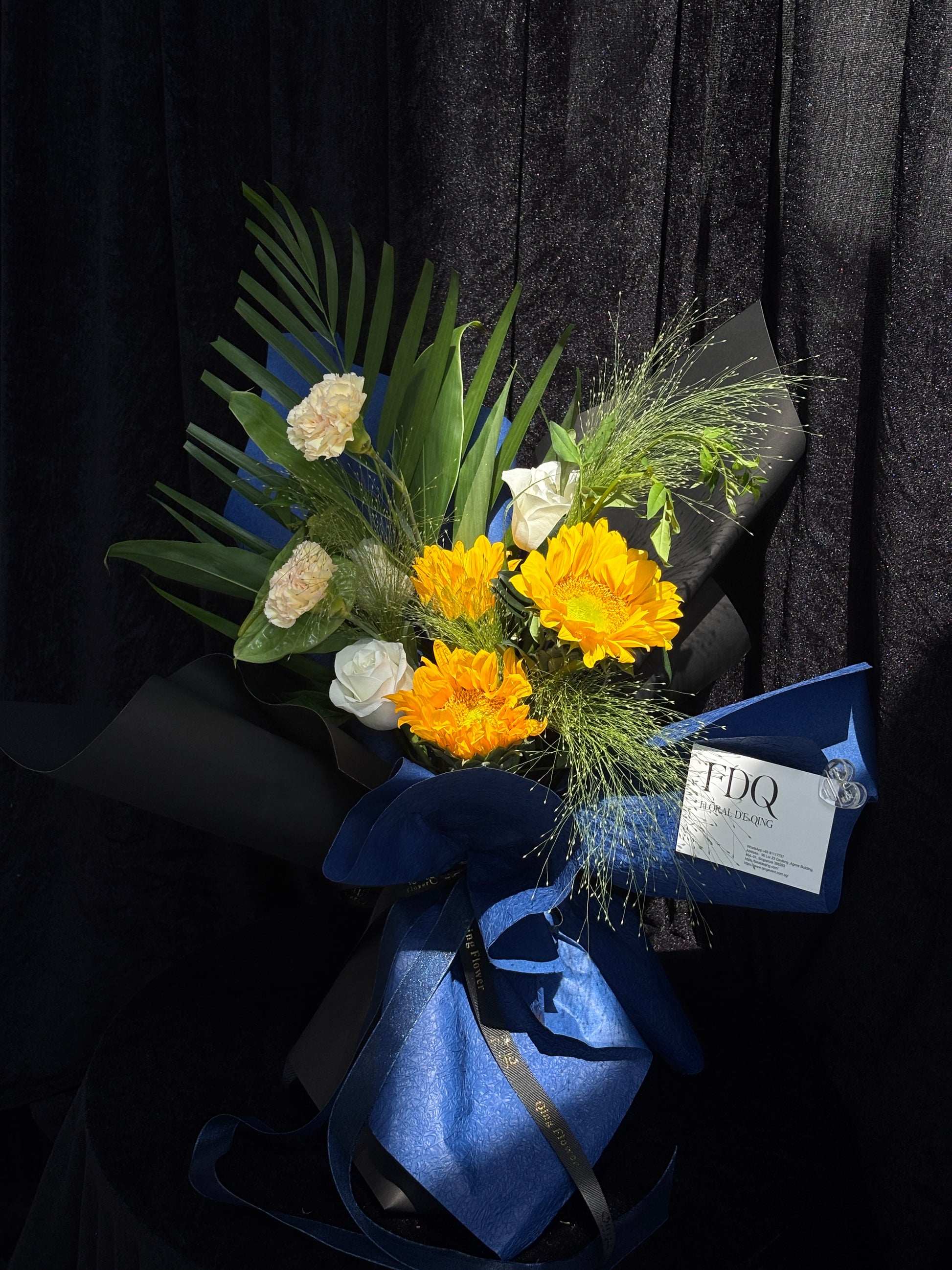 A heart full of dreams and devotion. This exquisite bouquet features a heart-shaped design of blue and white roses, symbolizing purity, sincerity, and everlasting love. Wrapped in soft white layers with pearl accents, it radiates elegance and romance. Perfect for proposals, anniversaries, or simply to say “you are my one and only.”• Main Flowers: White Roses• Shape: Heart-shaped romantic design• Style: Elegant, dreamy, and timeless• Suitable For: Proposal, Anniversary, Valentine’s Day, Romantic SurprisesAll fresh flowers and foliage are seasonal and may be substituted with similar varieties of equal or greater value. Each arrangement is uniquely handcrafted and may vary slightly from the display photo.
