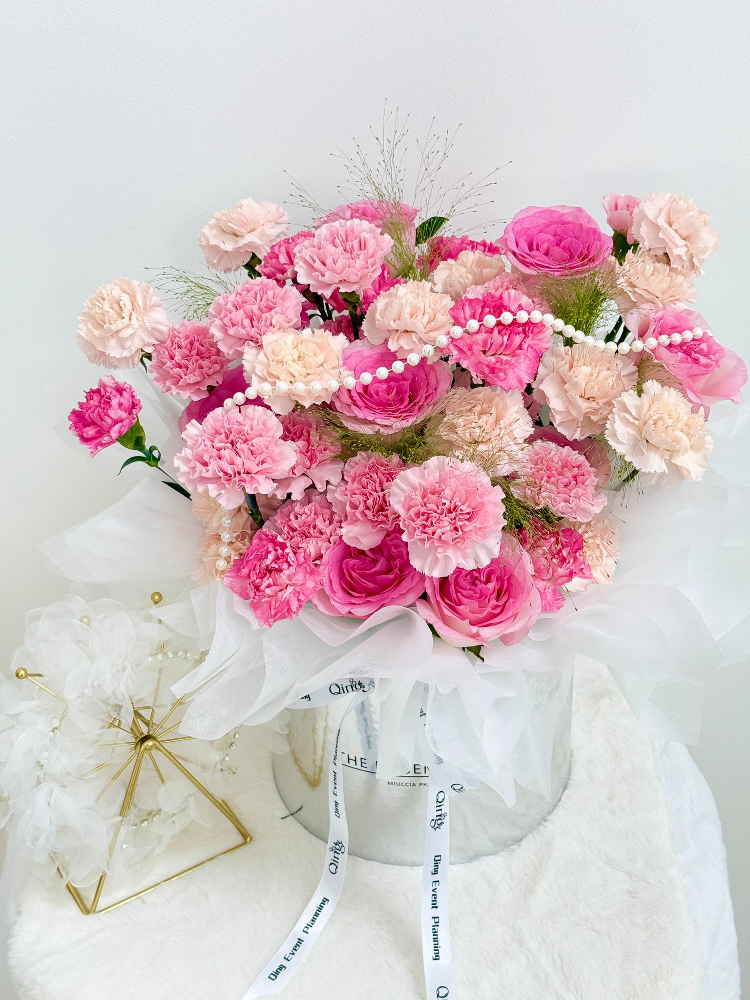 A heart full of dreams and devotion. This exquisite bouquet features a heart-shaped design of blue and white roses, symbolizing purity, sincerity, and everlasting love. Wrapped in soft white layers with pearl accents, it radiates elegance and romance. Perfect for proposals, anniversaries, or simply to say “you are my one and only.”• Main Flowers: White Roses• Shape: Heart-shaped romantic design• Style: Elegant, dreamy, and timeless• Suitable For: Proposal, Anniversary, Valentine’s Day, Romantic SurprisesAll fresh flowers and foliage are seasonal and may be substituted with similar varieties of equal or greater value. Each arrangement is uniquely handcrafted and may vary slightly from the display photo.