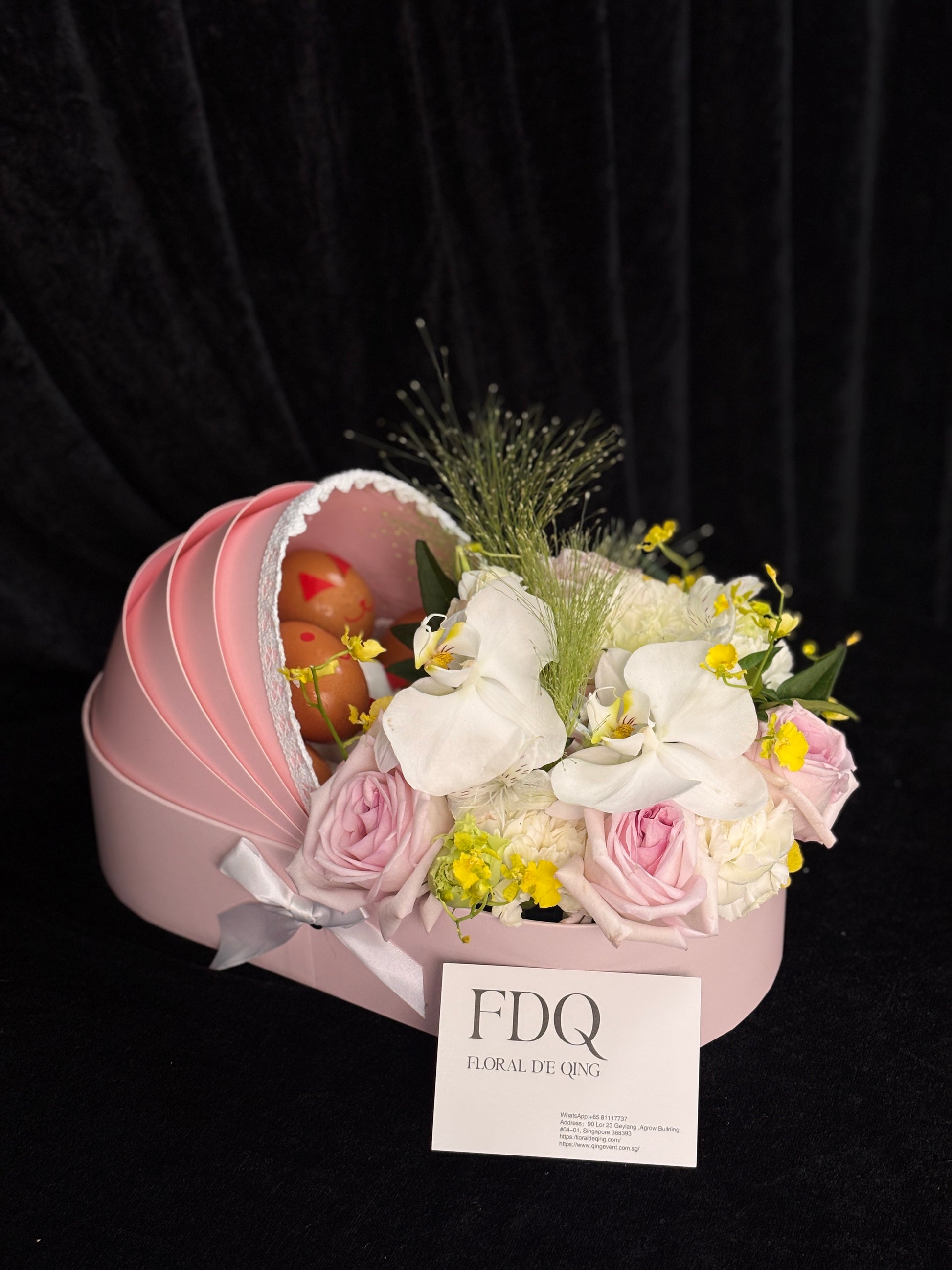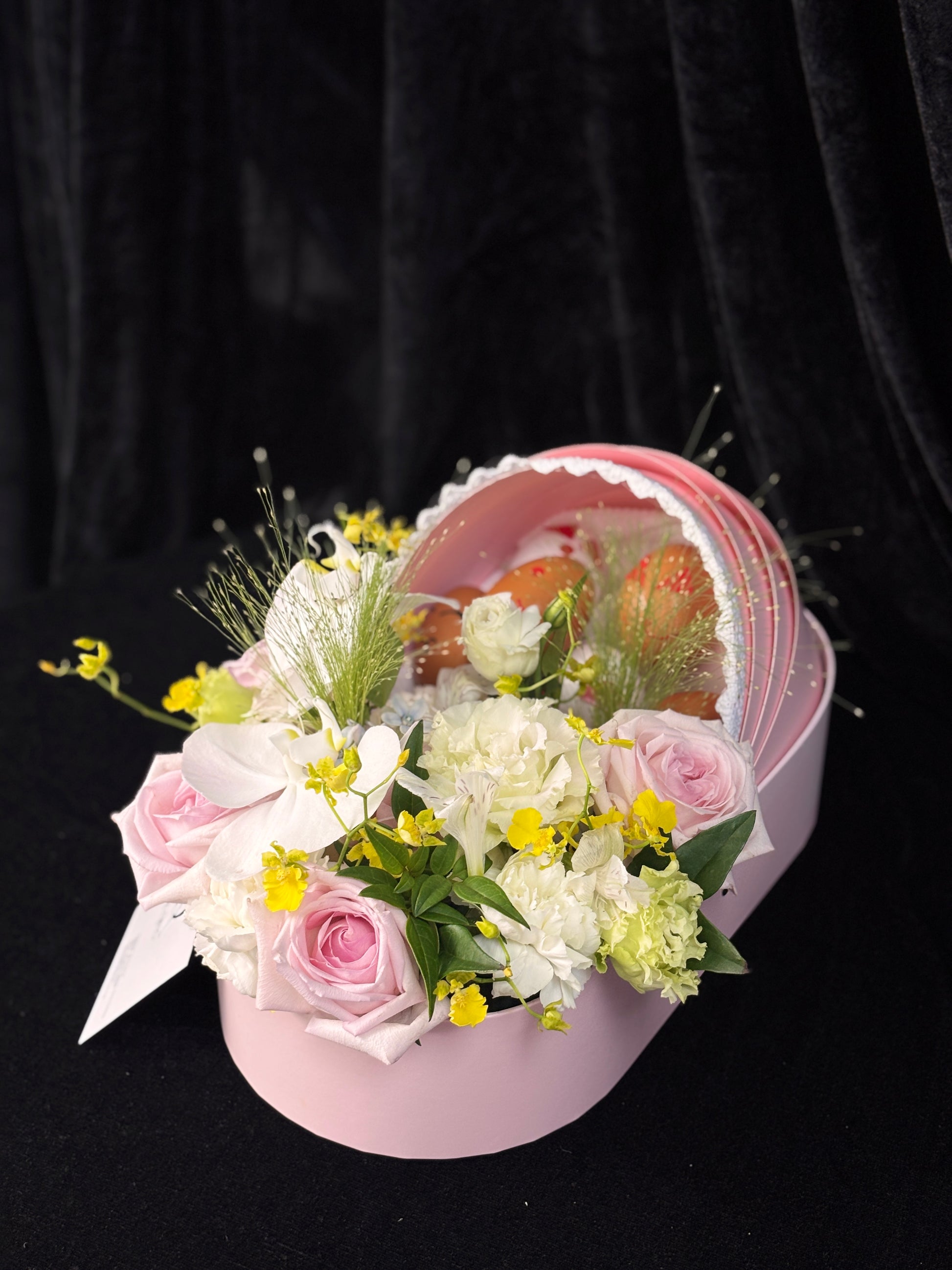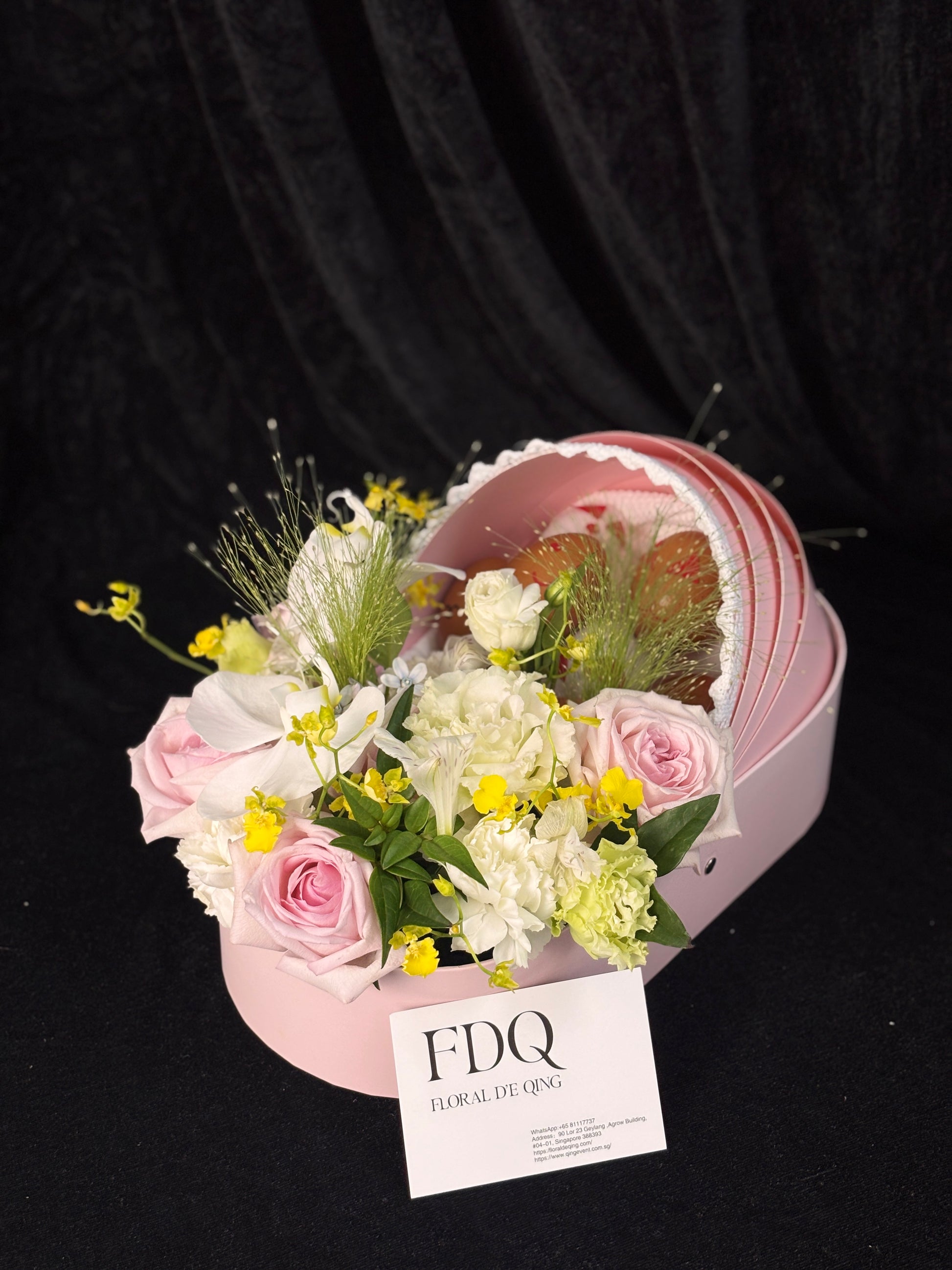 A heart full of dreams and devotion. This exquisite bouquet features a heart-shaped design of blue and white roses, symbolizing purity, sincerity, and everlasting love. Wrapped in soft white layers with pearl accents, it radiates elegance and romance. Perfect for proposals, anniversaries, or simply to say “you are my one and only.”• Main Flowers: White Roses• Shape: Heart-shaped romantic design• Style: Elegant, dreamy, and timeless• Suitable For: Proposal, Anniversary, Valentine’s Day, Romantic SurprisesAll fresh flowers and foliage are seasonal and may be substituted with similar varieties of equal or greater value. Each arrangement is uniquely handcrafted and may vary slightly from the display photo.
